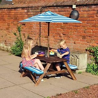 Be-Creative Childrens / Kids Garden Picnic Table With Parasol and Seat Cushions
