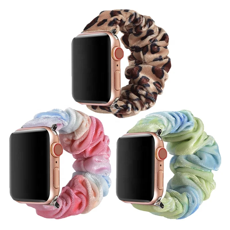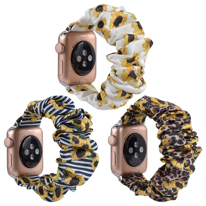 Leopard Fabric Strap Elastic Watch Band for Apple Watch Sunflowers 42mm 38mm Scrunchies Watch Band