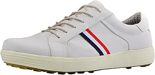 SDEQA Mens Golf Shoes Wide Fitting Leather Waterproof Sneakers Outdoor Anti-Slip Spikeless Golf Trainers